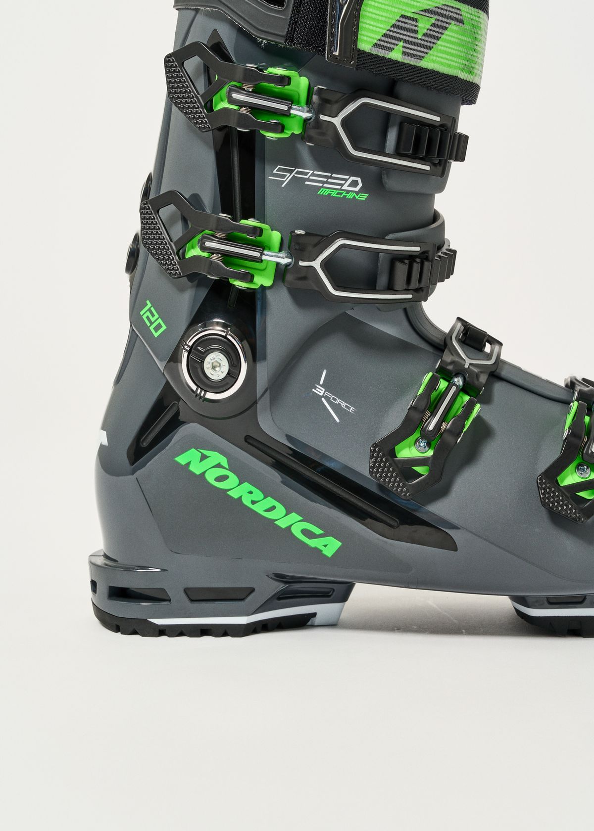 The Speedmachine 3 120 features a shell with an innovative honeycomb construction made from a rigid plastic that integrates with a softer plastic. The result is impressive support and power transmission in key areas whilst the foot is still comfortably enveloped, as well as making the shell 5% lighter than previous models.